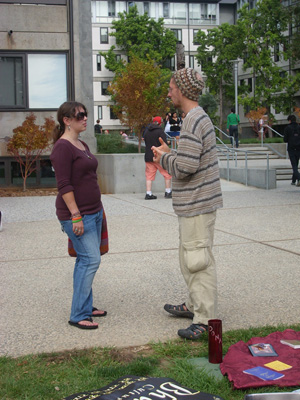 After this meeting everyone went downtown for Harinam Sankirttan on Pacific Avenue, where we continued to pass out invitations and books.