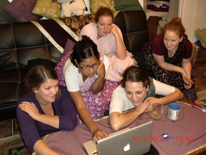 The program started at 9 p.m. at Jivana Didi's house in San Jose, here is Madhumita setting up Skype and checking to make sure the Chinese devotees and Yudhamanyu are all online.